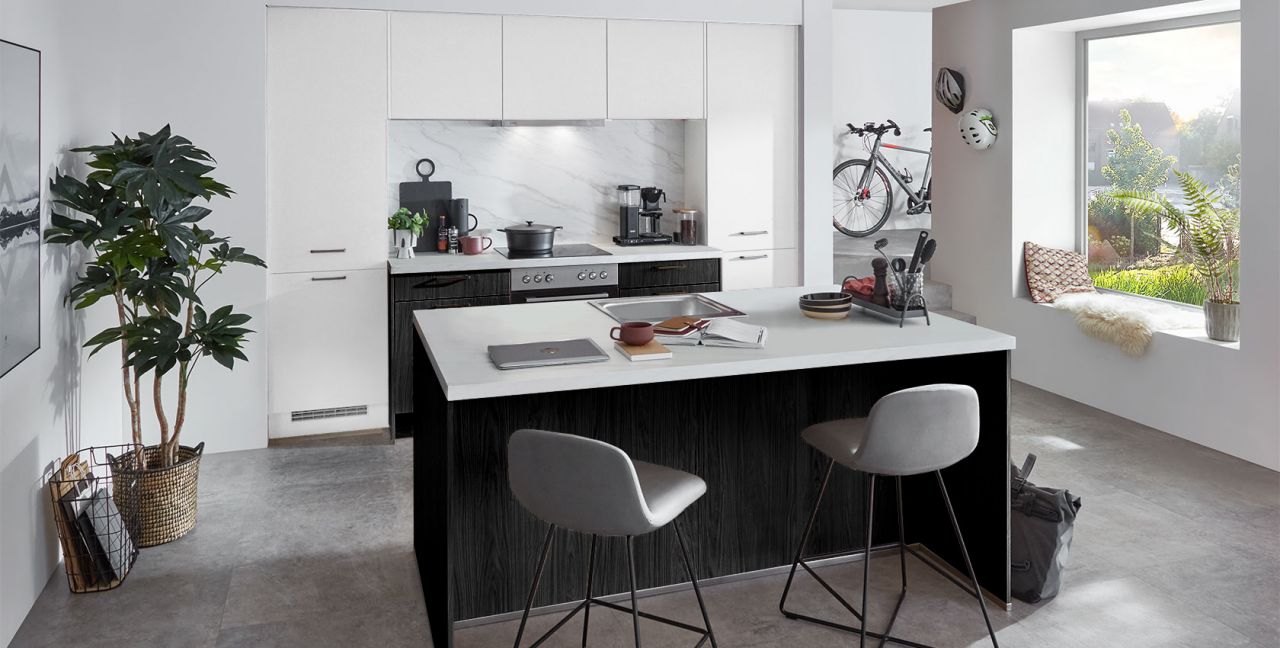Inklusive Einbauherd Edelstahl Laurus LEH5 Energieeffizienzklasse A, Glaskeramik Kochfeld Laurus LCF600, Flachschirmhaube Elica ELITE 14 60-D Energieeffizienzklasse D, Kühl- / Gefrierkombination Laurus LKG178E Energieeffizienzklasse E, Einbauspüle Edelstahl Rodi NewManaus, Esstheke.