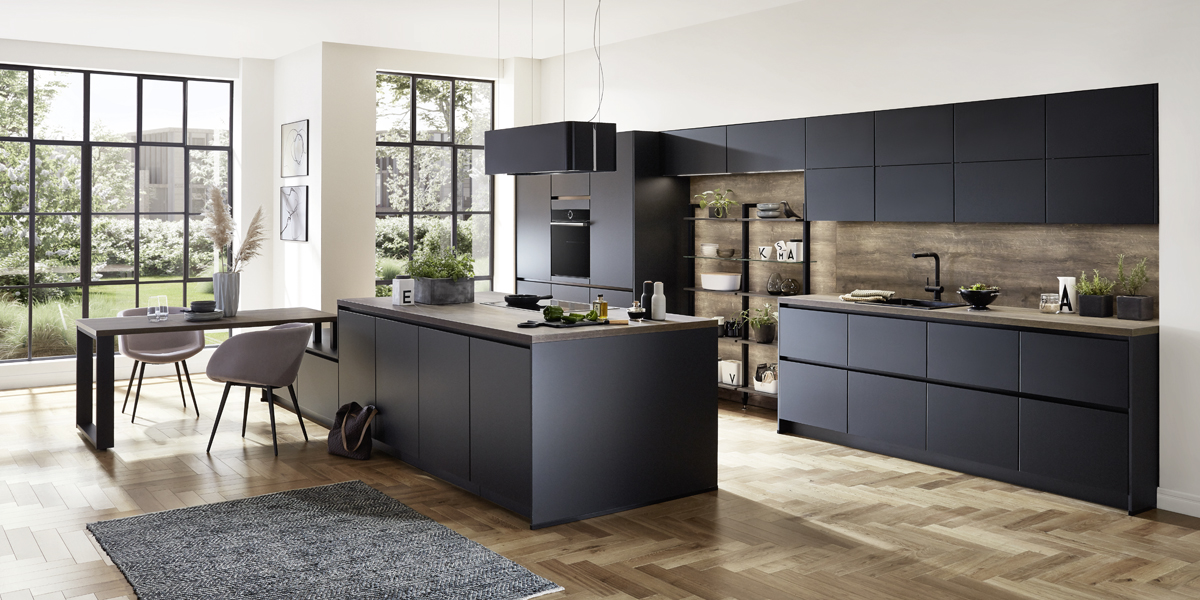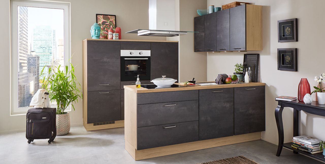 Inklusive Einbaubackofen Edelstahl Laurus LEB3 Energieeffizienzklasse A, Glaskeramik Kochfeld Laurus LCA600, Inselesse Edelstahl Elica JOYE INSEL-A Energieeffizienzklasse A, Kühlschrank Laurus LKG88E Energieeffizienzklasse E, Einbauspüle Edelstahl Rodi Okio Line 85 Deep, Unterschrank mit Frontauszügen.