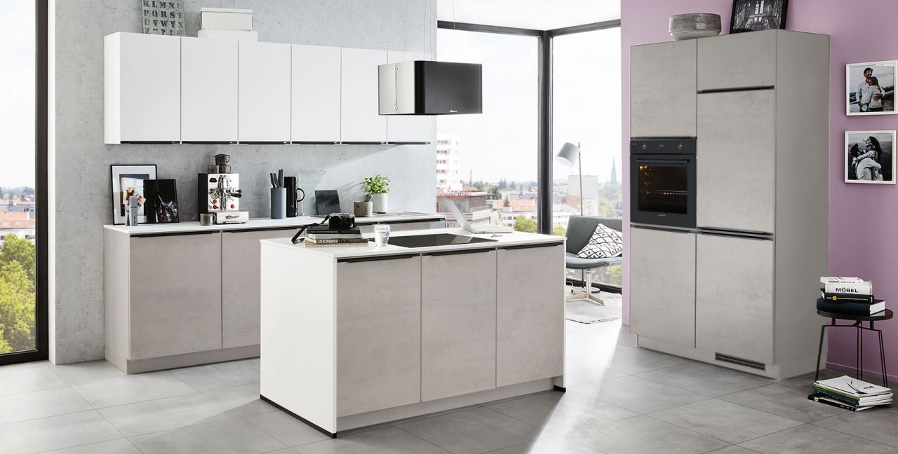 Inklusive Einbaubackofen Laurus LEB10BK Energieeffizienzklasse A, Glaskeramik Kochfeld mit Induktion Laurus LIA600, Inselesse Edelstahl Airforce F181BK Energieeffizienzklasse B, Kühlschrank Laurus LKS88E Energieeffizienzklasse E, Einbauspüle Edelstahl Rodi Okio Line 85 Deep, XL-Schränken.